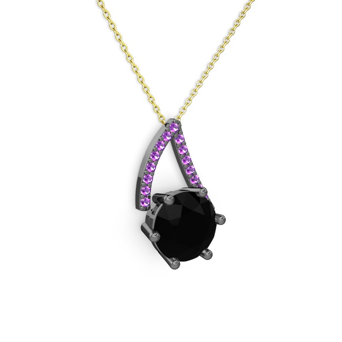 Siyah zirkon ve ametist 925 ayar siyah rodyum kaplama gümüş kolye (40 cm gümüş rolo zincir)