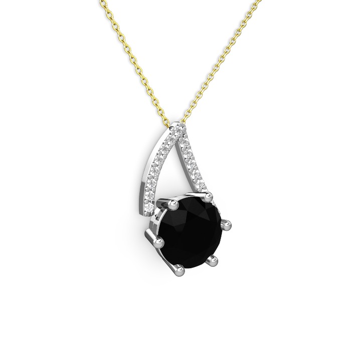 Siyah zirkon ve beyaz zirkon 925 ayar gümüş kolye (40 cm altın rolo zincir)