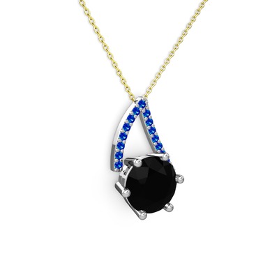 Siyah zirkon ve lab safir 14 ayar beyaz altın kolye (40 cm altın rolo zincir)