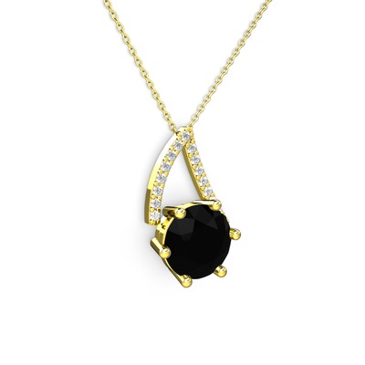 Siyah zirkon ve pırlanta 14 ayar altın kolye (0.24 karat, 40 cm altın rolo zincir)