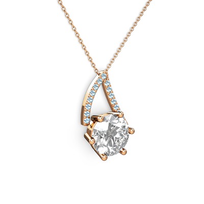 Swarovski ve akuamarin 925 ayar rose altın kaplama gümüş kolye (40 cm rose altın rolo zincir)
