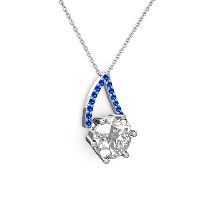 Swarovski ve lab safir 14 ayar beyaz altın kolye (40 cm beyaz altın rolo zincir)