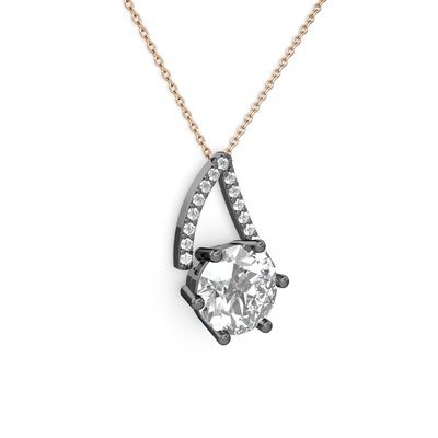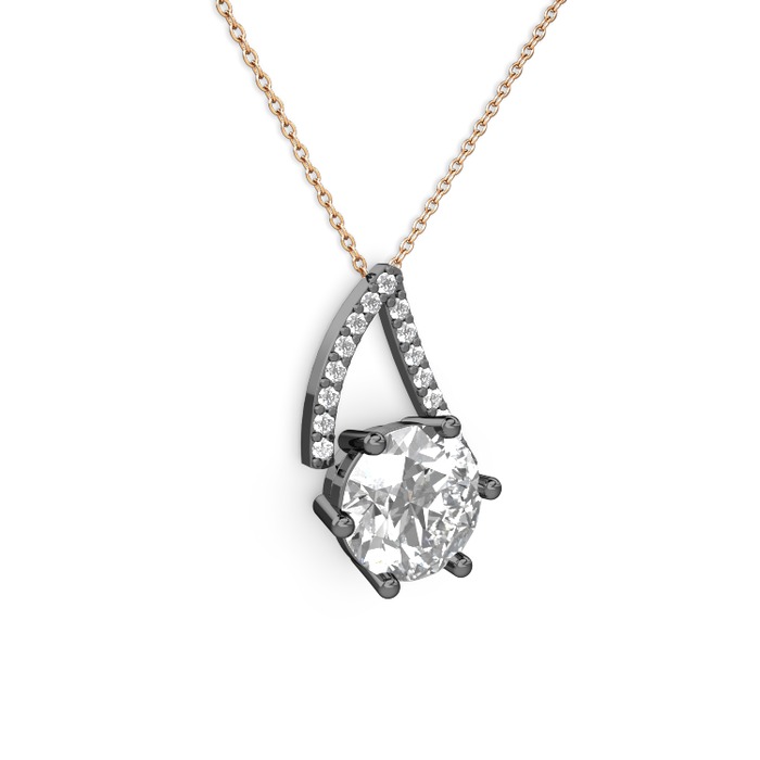 Swarovski ve pırlanta 925 ayar siyah rodyum kaplama gümüş kolye (0.24 karat, 40 cm rose altın rolo zincir)