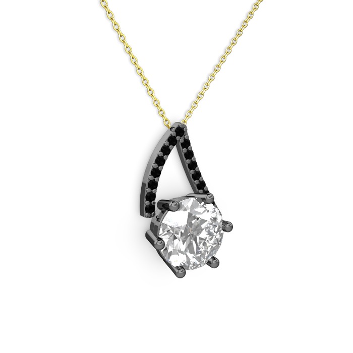 Swarovski ve siyah zirkon 925 ayar siyah rodyum kaplama gümüş kolye (40 cm altın rolo zincir)