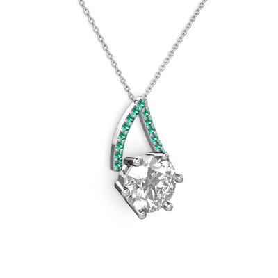 Swarovski ve yeşil kuvars 8 ayar beyaz altın kolye (40 cm beyaz altın rolo zincir)