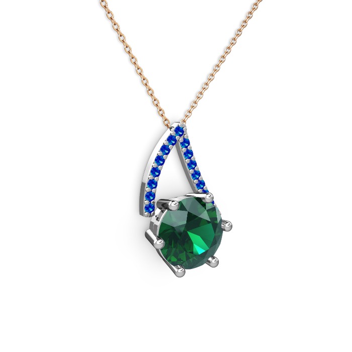 Yeşil kuvars ve lab safir 18 ayar beyaz altın kolye (40 cm rose altın rolo zincir)