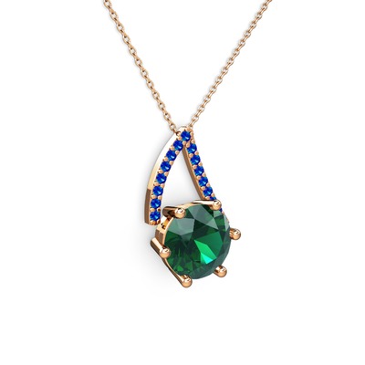 Yeşil kuvars ve lab safir 18 ayar rose altın kolye (40 cm rose altın rolo zincir)