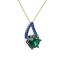 Yeşil kuvars ve lab safir 925 ayar siyah rodyum kaplama gümüş kolye (40 cm altın rolo zincir)