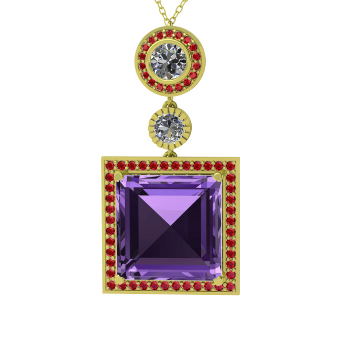 Ametist, beyaz zirkon ve garnet 8 ayar altın kolye (40 cm altın rolo zincir)