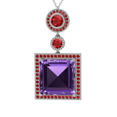 Ametist ve garnet 14 ayar beyaz altın kolye (40 cm beyaz altın rolo zincir)