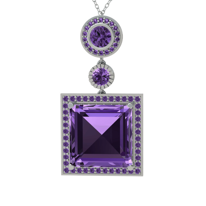 Ametist 925 ayar gümüş kolye (40 cm beyaz altın rolo zincir)