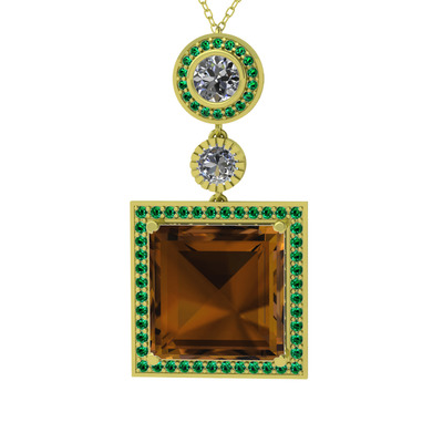 Dumanlı kuvars, beyaz zirkon ve yeşil kuvars 8 ayar altın kolye (40 cm gümüş rolo zincir)