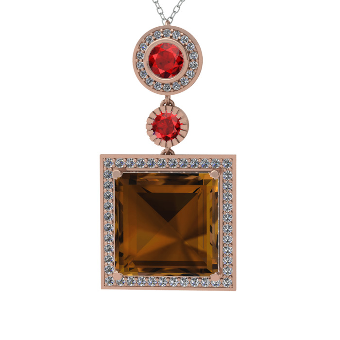 Dumanlı kuvars, garnet ve beyaz zirkon 8 ayar rose altın kolye (40 cm beyaz altın rolo zincir)