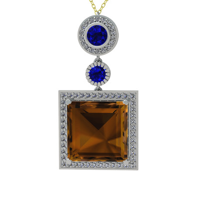 Dumanlı kuvars, lab safir ve beyaz zirkon 14 ayar beyaz altın kolye (40 cm altın rolo zincir)