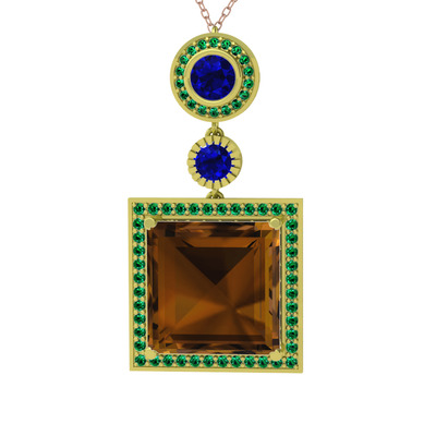 Dumanlı kuvars, lab safir ve yeşil kuvars 14 ayar altın kolye (40 cm rose altın rolo zincir)