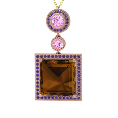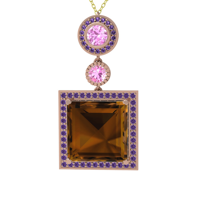 Dumanlı kuvars, pembe kuvars ve ametist 14 ayar rose altın kolye (40 cm altın rolo zincir)