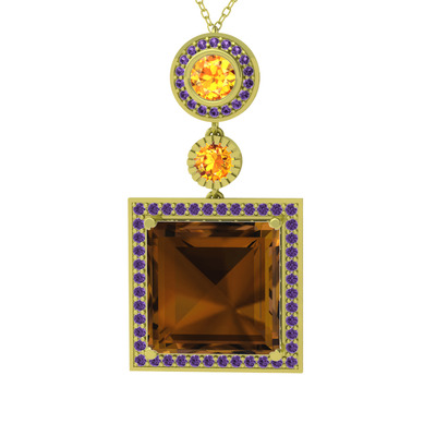 Dumanlı kuvars, sitrin ve ametist 8 ayar altın kolye (40 cm altın rolo zincir)