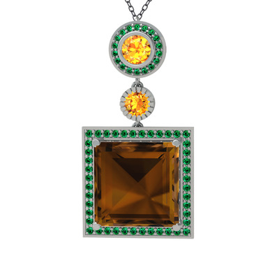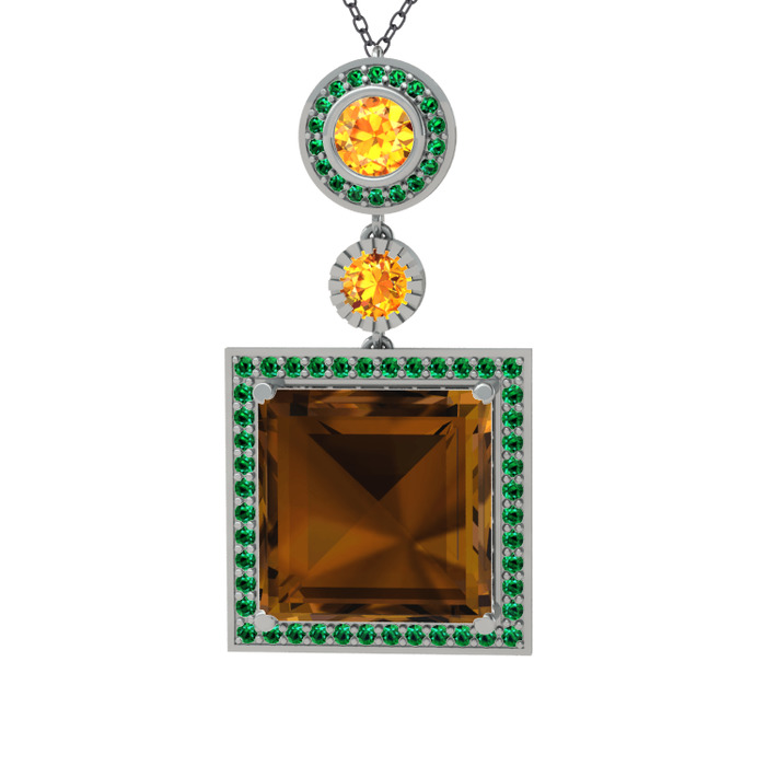 Dumanlı kuvars, sitrin ve yeşil kuvars 14 ayar beyaz altın kolye (40 cm gümüş rolo zincir)
