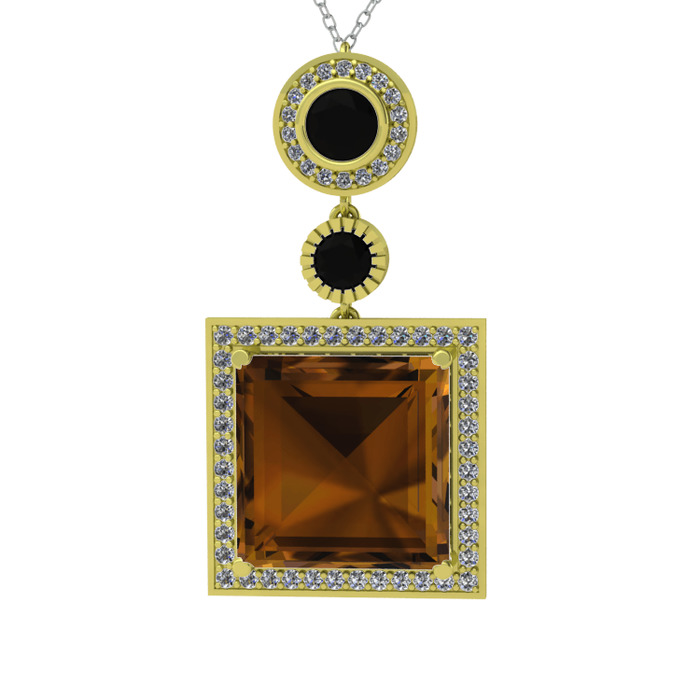 Dumanlı kuvars, siyah zirkon ve beyaz zirkon 8 ayar altın kolye (40 cm gümüş rolo zincir)