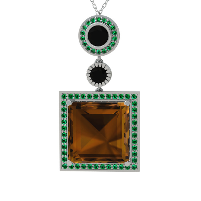 Dumanlı kuvars, siyah zirkon ve yeşil kuvars 14 ayar beyaz altın kolye (40 cm beyaz altın rolo zincir)