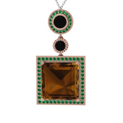 Dumanlı kuvars, siyah zirkon ve yeşil kuvars 8 ayar rose altın kolye (40 cm beyaz altın rolo zincir)