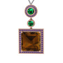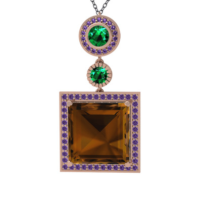 Dumanlı kuvars, yeşil kuvars ve ametist 14 ayar rose altın kolye (40 cm gümüş rolo zincir)