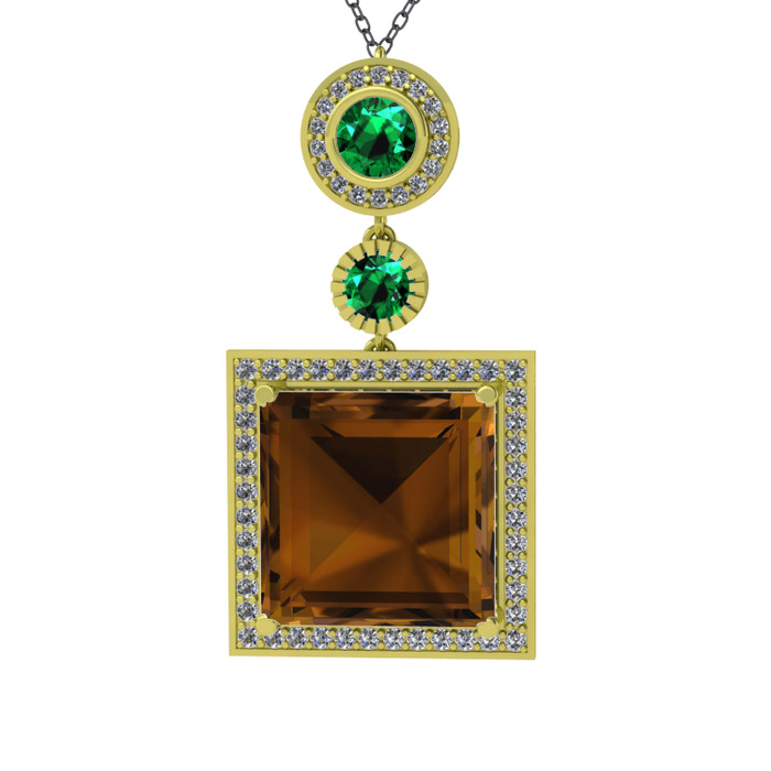 Dumanlı kuvars, yeşil kuvars ve beyaz zirkon 925 ayar altın kaplama gümüş kolye (40 cm gümüş rolo zincir)