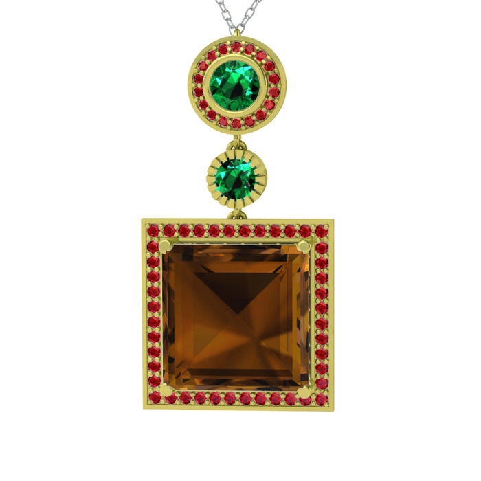 Dumanlı kuvars, yeşil kuvars ve garnet 925 ayar altın kaplama gümüş kolye (40 cm beyaz altın rolo zincir)