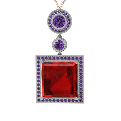 Garnet ve ametist 925 ayar gümüş kolye (40 cm gümüş rolo zincir)
