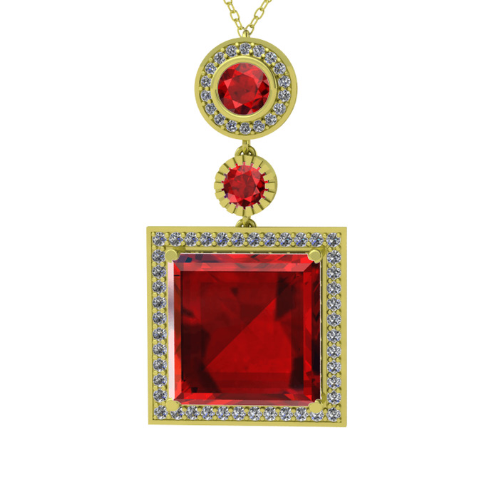 Garnet ve beyaz zirkon 925 ayar altın kaplama gümüş kolye (40 cm gümüş rolo zincir)