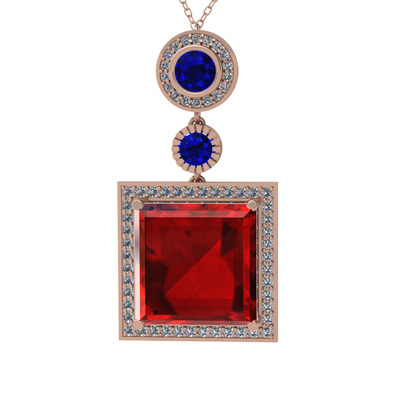 Garnet, lab safir ve beyaz zirkon 14 ayar rose altın kolye (40 cm rose altın rolo zincir)