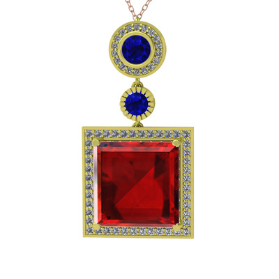 Garnet, lab safir ve beyaz zirkon 8 ayar altın kolye (40 cm rose altın rolo zincir)