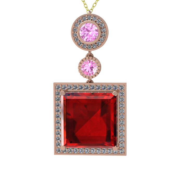 Garnet, pembe kuvars ve beyaz zirkon 18 ayar rose altın kolye (40 cm altın rolo zincir)