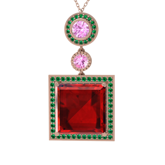 Garnet, pembe kuvars ve yeşil kuvars 18 ayar rose altın kolye (40 cm rose altın rolo zincir)