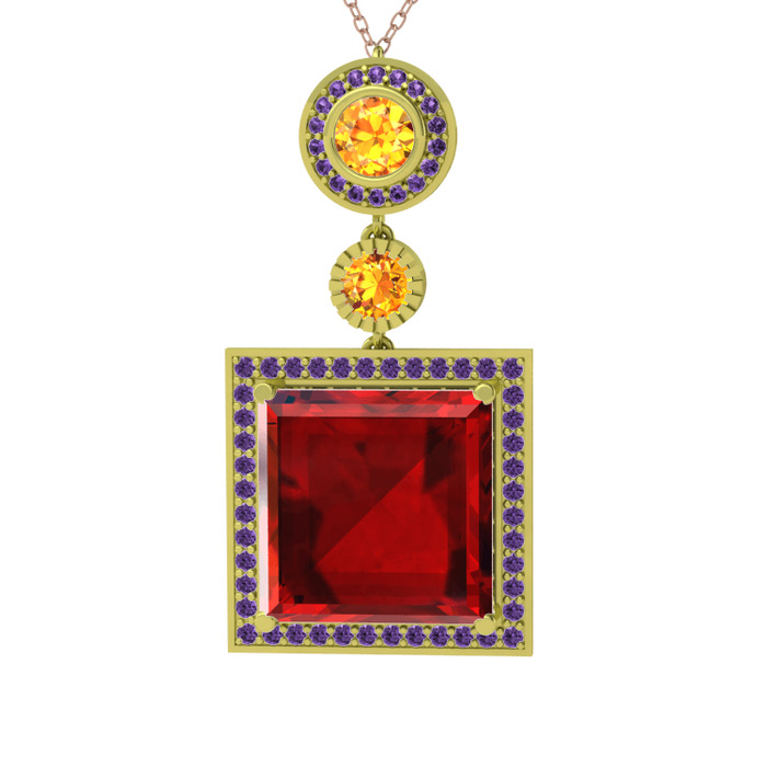 Garnet, sitrin ve ametist 14 ayar altın kolye (40 cm gümüş rolo zincir)
