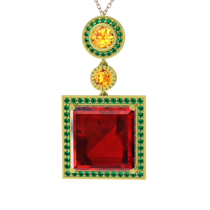 Garnet, sitrin ve yeşil kuvars 925 ayar altın kaplama gümüş kolye (40 cm gümüş rolo zincir)