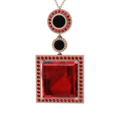 Garnet ve siyah zirkon 14 ayar rose altın kolye (40 cm gümüş rolo zincir)