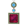 Rodolit garnet, akuamarin ve yeşil kuvars 8 ayar rose altın kolye (40 cm beyaz altın rolo zincir)
