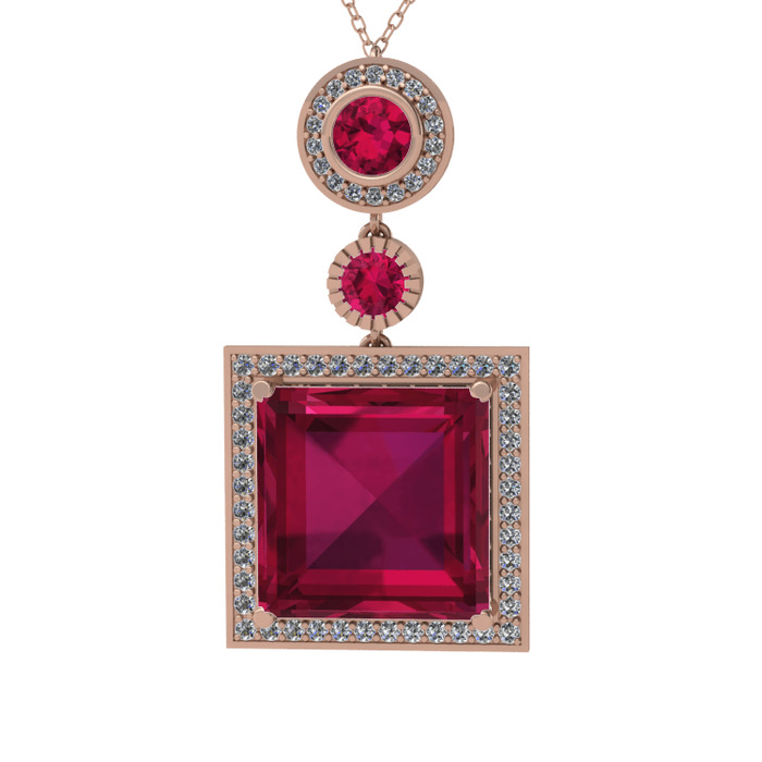 Rodolit garnet ve beyaz zirkon 18 ayar rose altın kolye (40 cm rose altın rolo zincir)