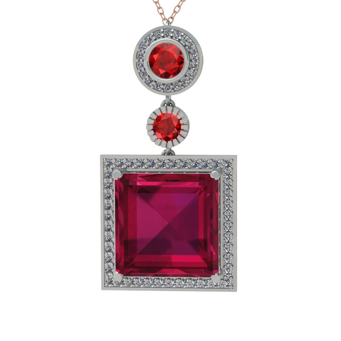 Rodolit garnet, garnet ve beyaz zirkon 925 ayar gümüş kolye (40 cm rose altın rolo zincir)