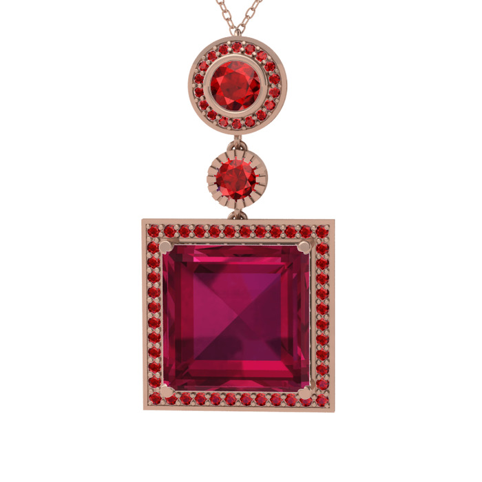 Rodolit garnet ve garnet 925 ayar rose altın kaplama gümüş kolye (40 cm rose altın rolo zincir)