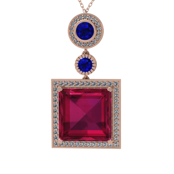 Rodolit garnet, lab safir ve beyaz zirkon 18 ayar rose altın kolye (40 cm rose altın rolo zincir)