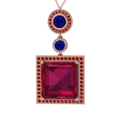 Rodolit garnet, lab safir ve garnet 18 ayar rose altın kolye (40 cm rose altın rolo zincir)