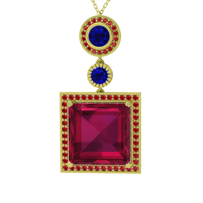 Rodolit garnet, lab safir ve garnet 8 ayar altın kolye (40 cm altın rolo zincir)