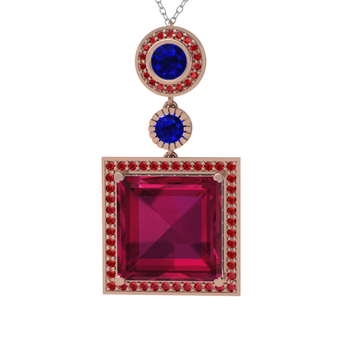 Rodolit garnet, lab safir ve garnet 8 ayar rose altın kolye (40 cm beyaz altın rolo zincir)