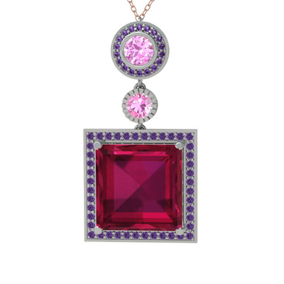 Rodolit garnet, pembe kuvars ve ametist 925 ayar gümüş kolye (40 cm gümüş rolo zincir)