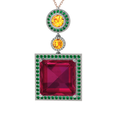 Rodolit garnet, sitrin ve yeşil kuvars 925 ayar gümüş kolye (40 cm rose altın rolo zincir)