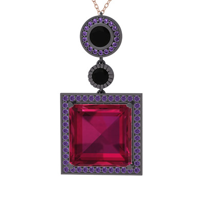 Rodolit garnet, siyah zirkon ve ametist 925 ayar siyah rodyum kaplama gümüş kolye (40 cm gümüş rolo zincir)