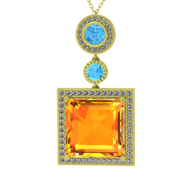 Sitrin, akuamarin ve beyaz zirkon 8 ayar altın kolye (40 cm altın rolo zincir)
