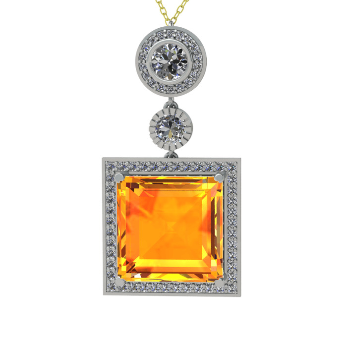 Sitrin ve beyaz zirkon 8 ayar beyaz altın kolye (40 cm gümüş rolo zincir)